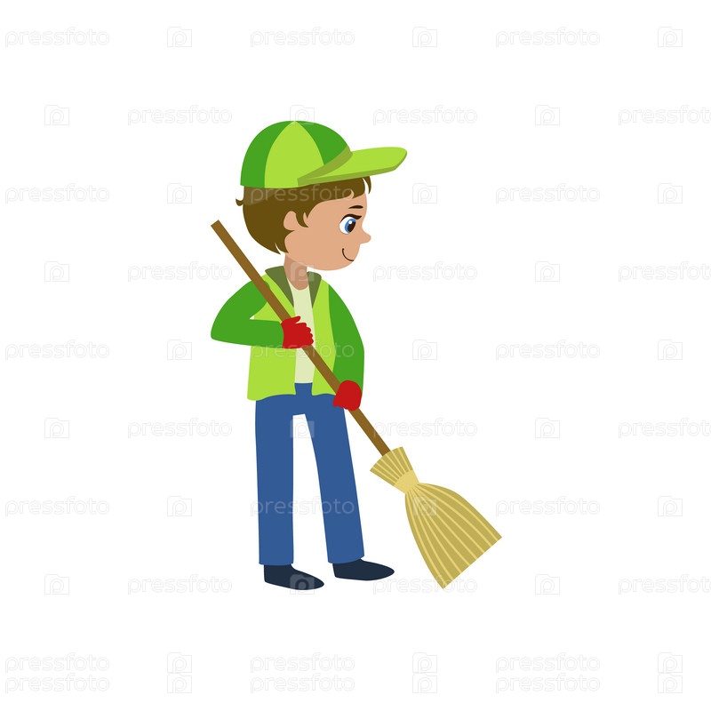 Мальчик подметает