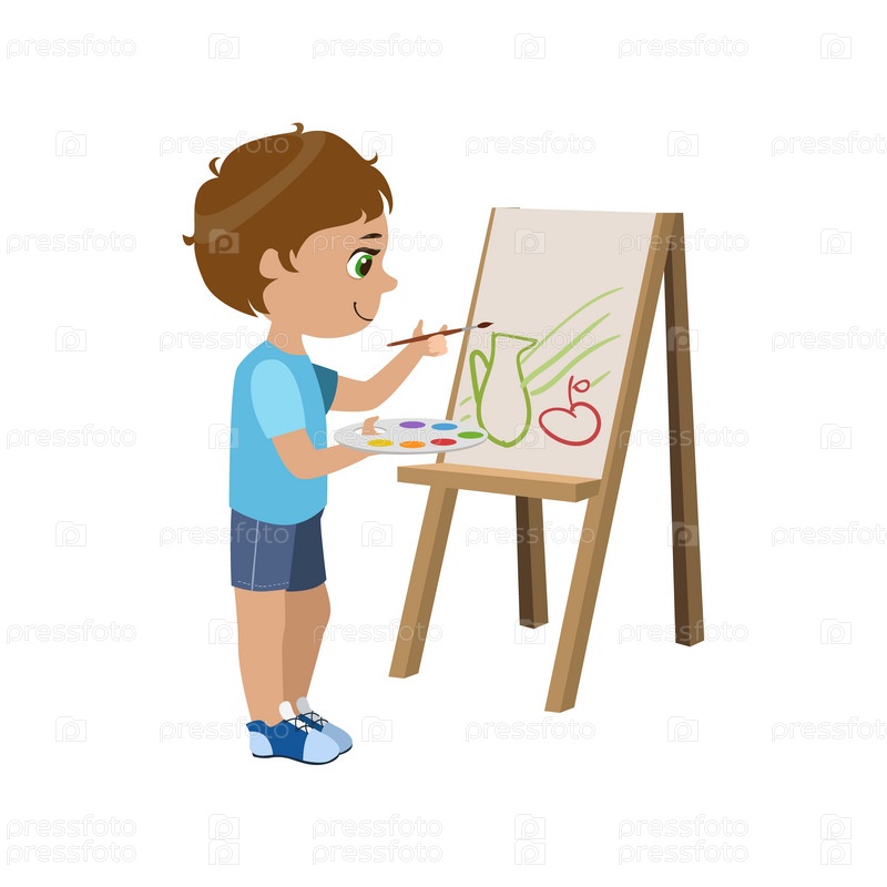 Маленький мальчик рисует картину