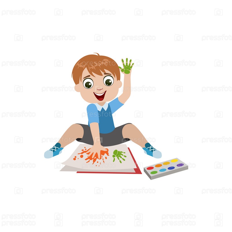 Мальчик рисует руками