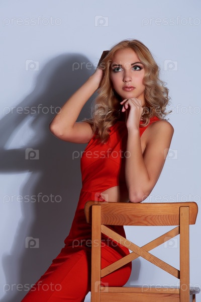 Портрет красивой девушки в красном платье
