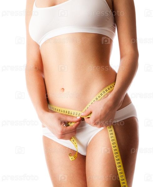 Женщина измеряет объем талии