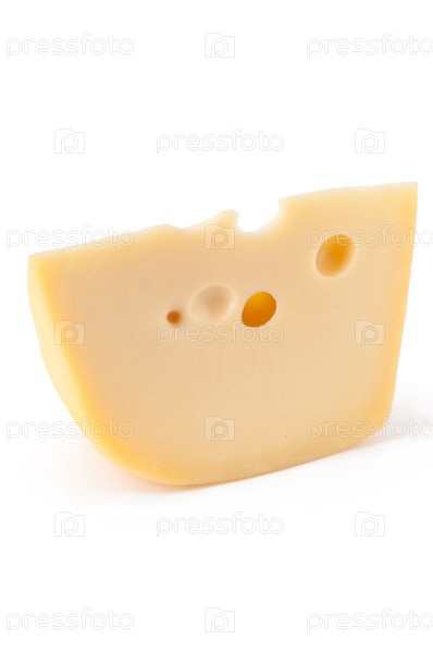 Кусочек сыра Маасдам, белый фон