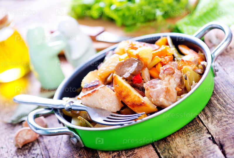 Жаренное мясо с овощами