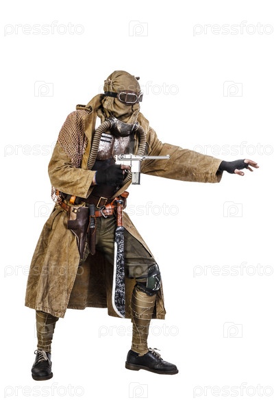 Человек в защитном костюме с оружием