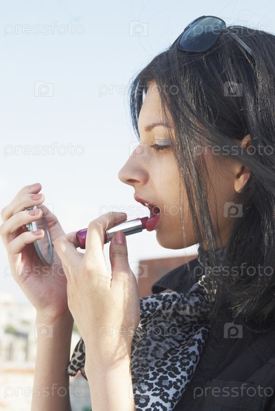 Молодая женщина красит губы
