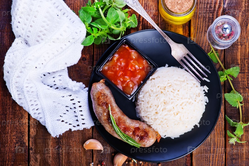 Каша рисовая с сосисками