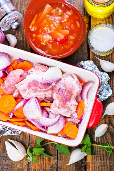 Сырое мясо с овощами