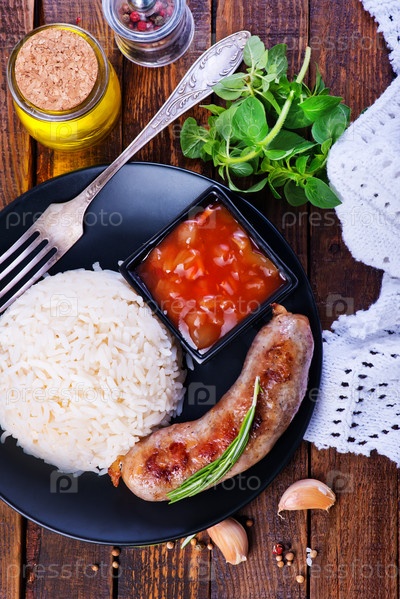 Каша рисовая с сосисками