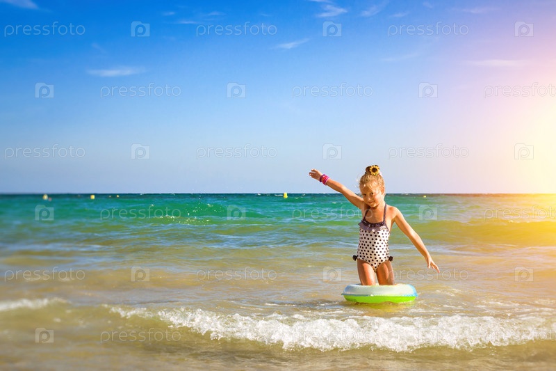 Милая маленькая девочка в море