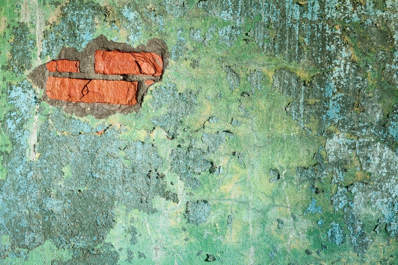 Каменная стена с пробитым отверстием, через которое видно красный кирпич