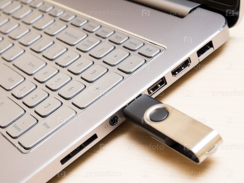 Клавиатура ноутбука и флэш-накопитель