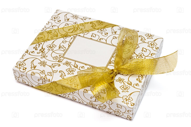 Подарочная коробка с золотой лентой