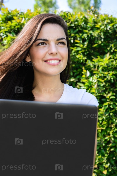 Красивая девушка с ноутбуком