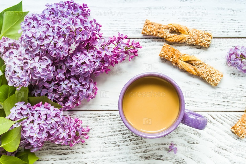 Чашечка кофе и сирень