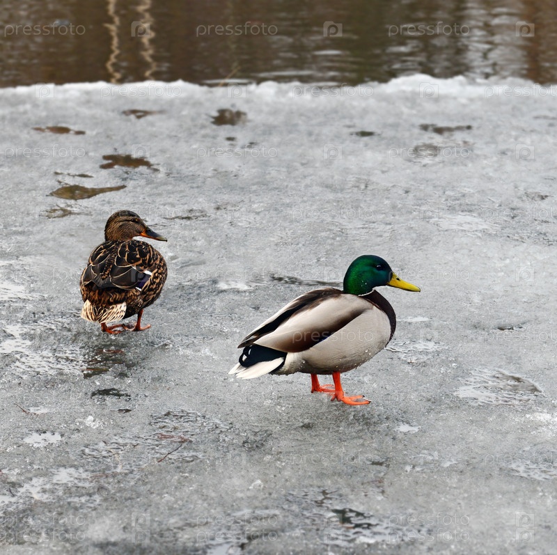 Утка и селезень на льду
