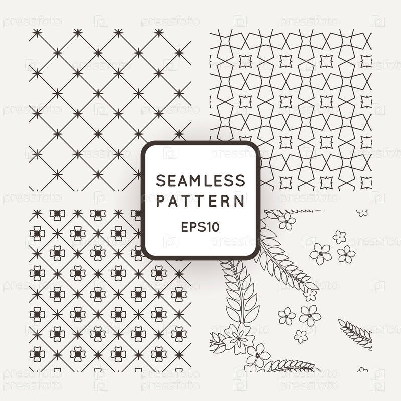 Бесшовные цветочные и геометрические узоры. Японский стиль. Арабский стиль