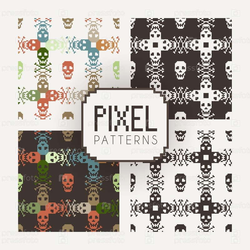 Набор бесшовные монохромные фоны черепа
