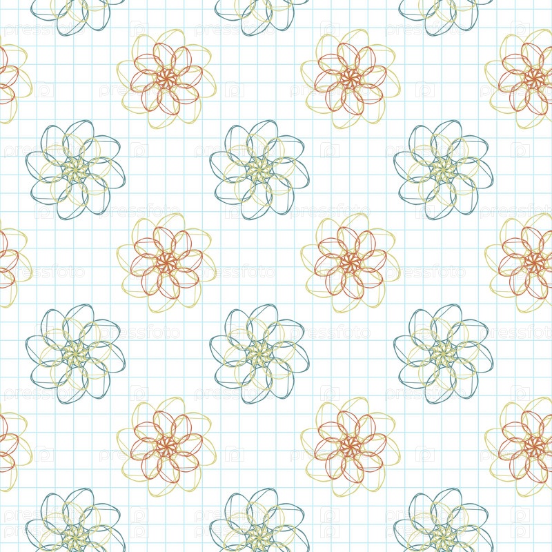 Бесшовный узор цветы на клетчатой бумаге