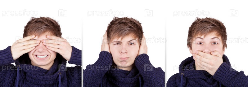 Подросток показывает концепцию трех мудрых обезьян