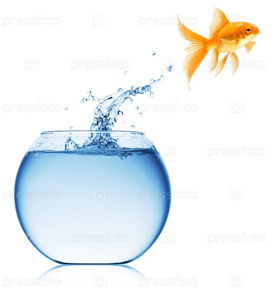 Золотая рыбка вылетает из аквариума