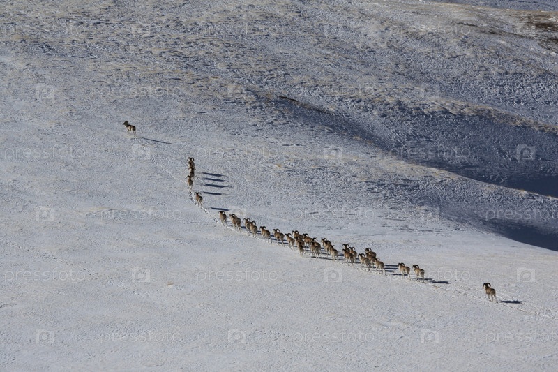 Стадо баранов Марко Поло в горах Тянь-Шаня