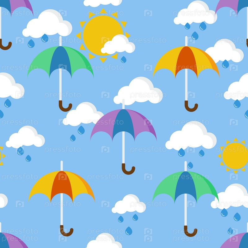 Яркий фон с зонтиками в дождь