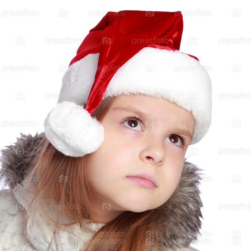 Милая маленькая девочка в шляпе Санта-Клауса