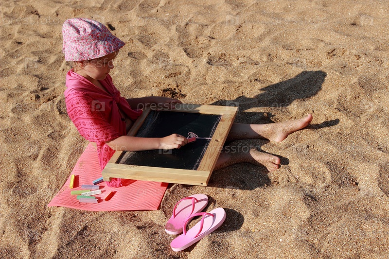 Очаровательная маленькая девочка рисует на доске