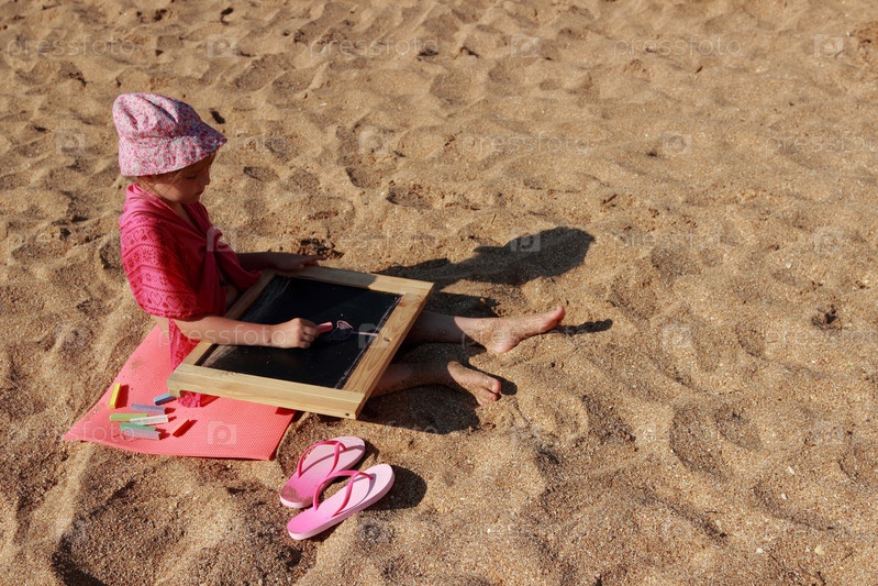 Очаровательная маленькая девочка рисует на доске