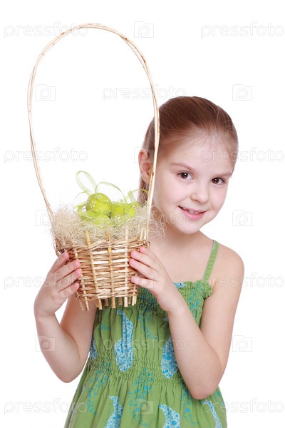 Маленькая девочка с пасхальной корзинкой