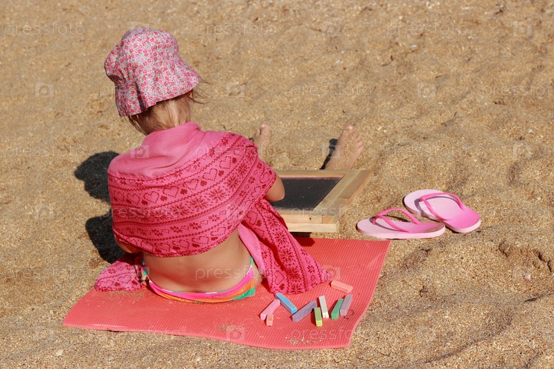 Очаровательная маленькая девочка рисует на доске
