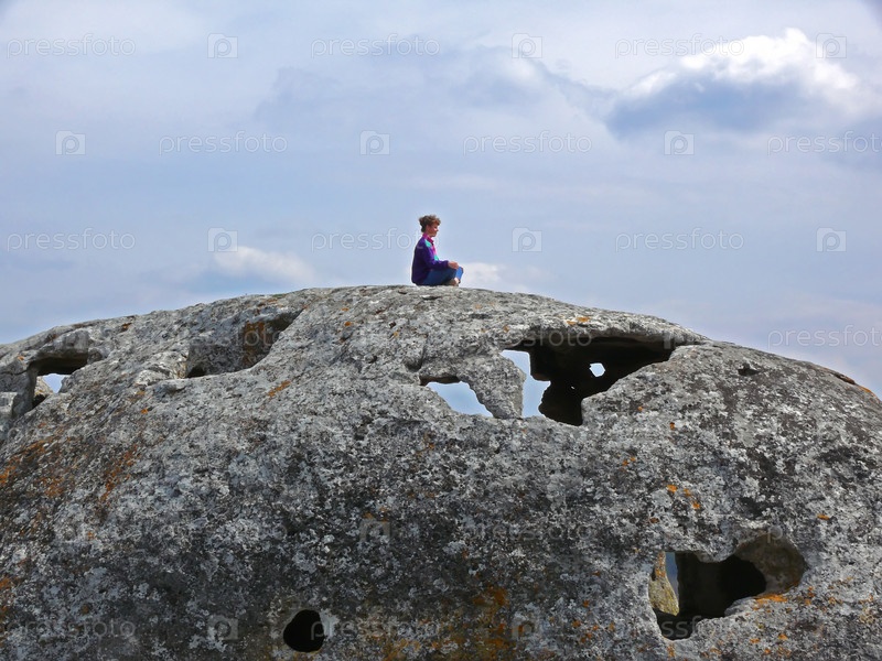 Девушка на каменном отверстии медитирует