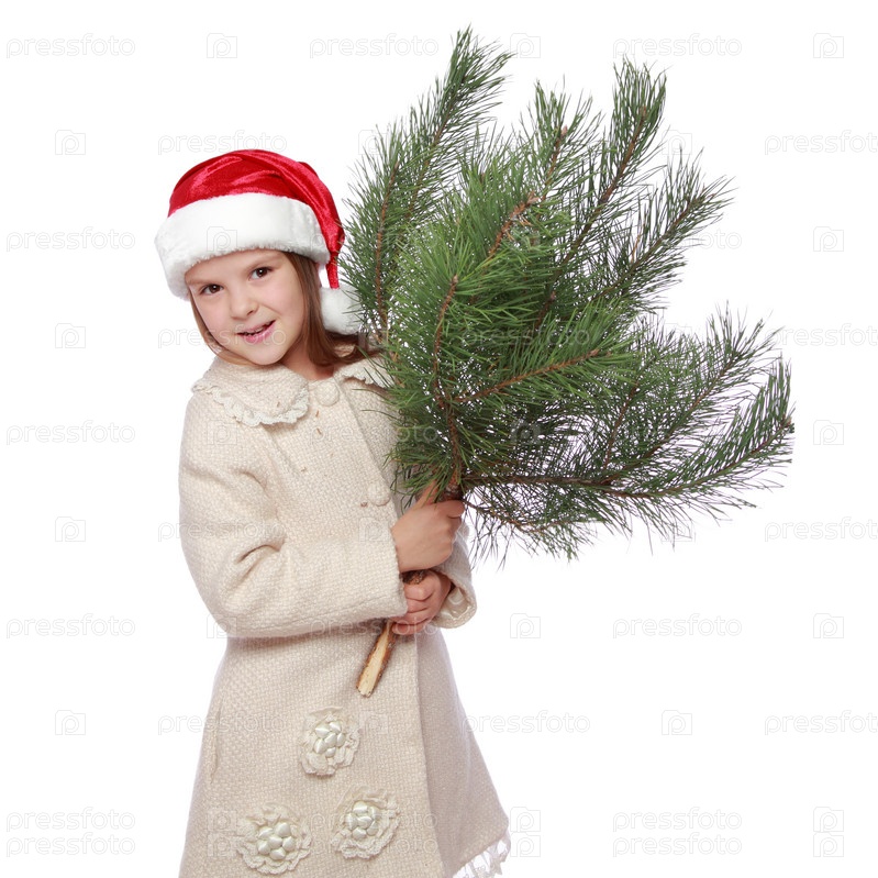 Веселая маленькая девочка с елкой