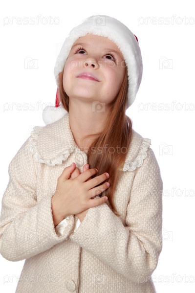 Маленькая девочка в красной шляпе Санты