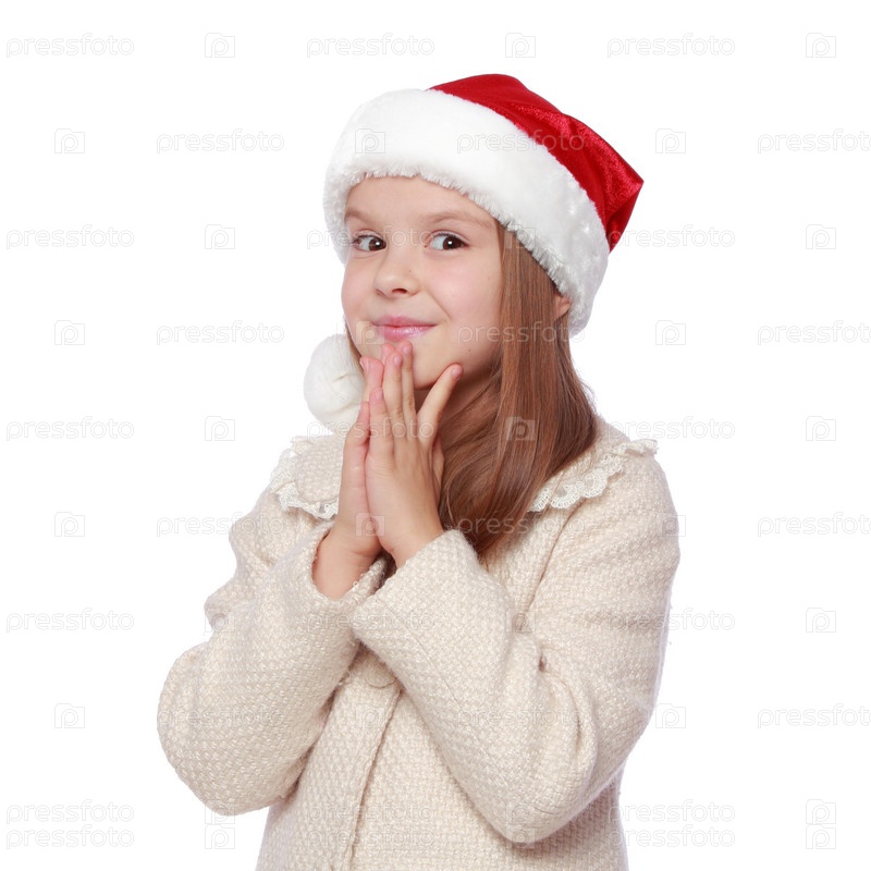 Маленькая девочка в красной шляпе Санты