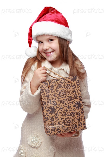 Хорошенькая девочка в шляпе Санта Клауса