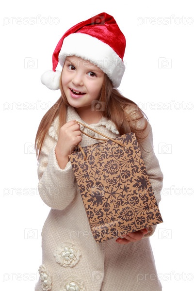 Хорошенькая девочка в шляпе Санта Клауса