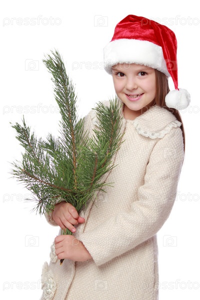 Веселая маленькая девочка с елкой