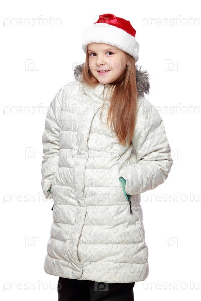 Милая маленькая девочка в шляпе Санта-Клауса
