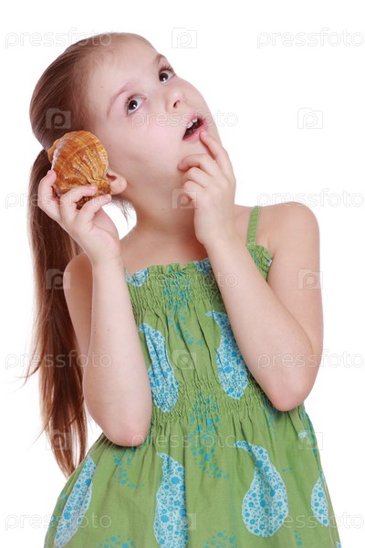 Очаровательная девочка с ракушкой