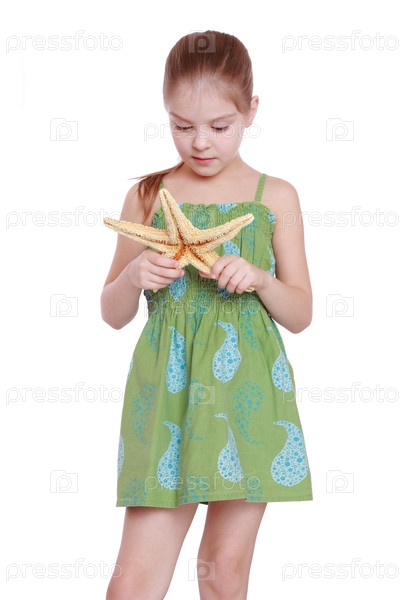 Очаровательная девочка с морской звездой