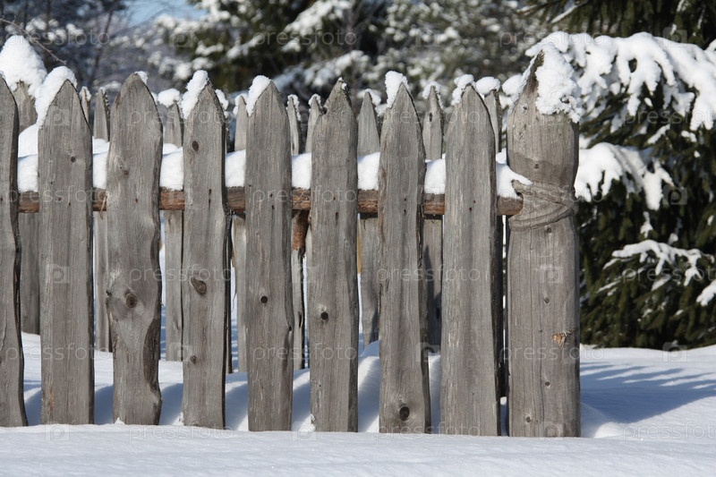 Деревянный забор в снегу