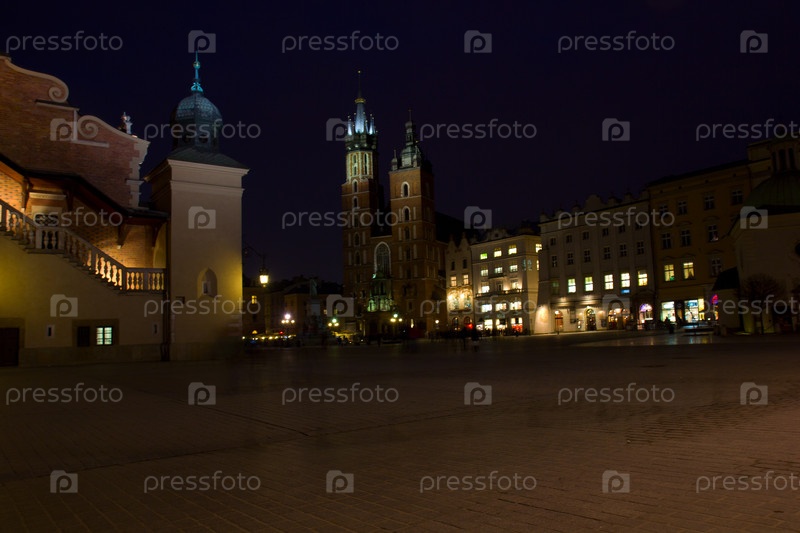 Старая Краковская рыночная площадь в ночное время, Польша
