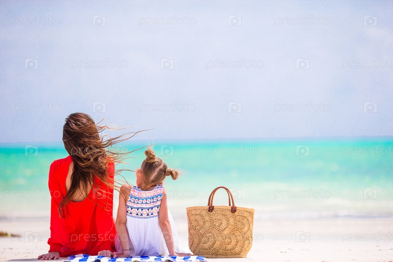 Счастливая семья на белом пляже во время летних каникул