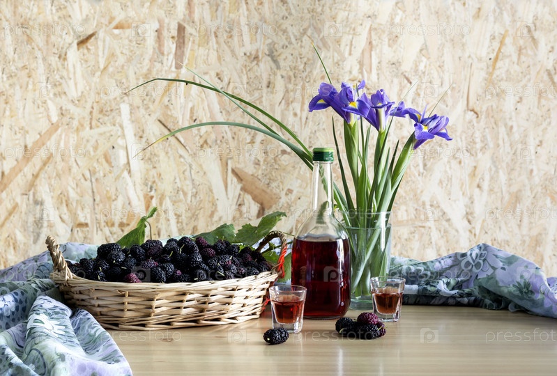 Натюрморт с шелковицей и ирисами