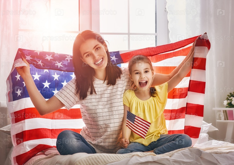 Мать и дочь с американским флагом