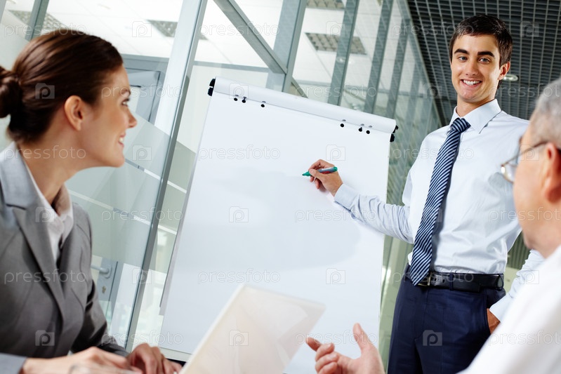 Бизнесмен презентует доклад деловым партнерам