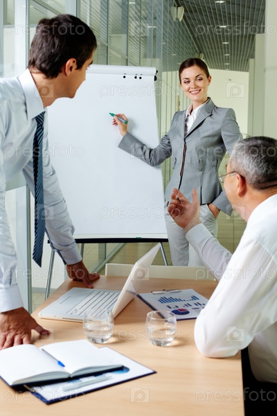 Деловая женщина презентует доклад своим партнерам