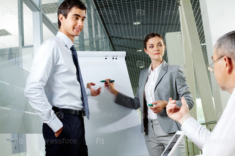 Деловые партнеры обсуждают рабочие вопросы в офисе