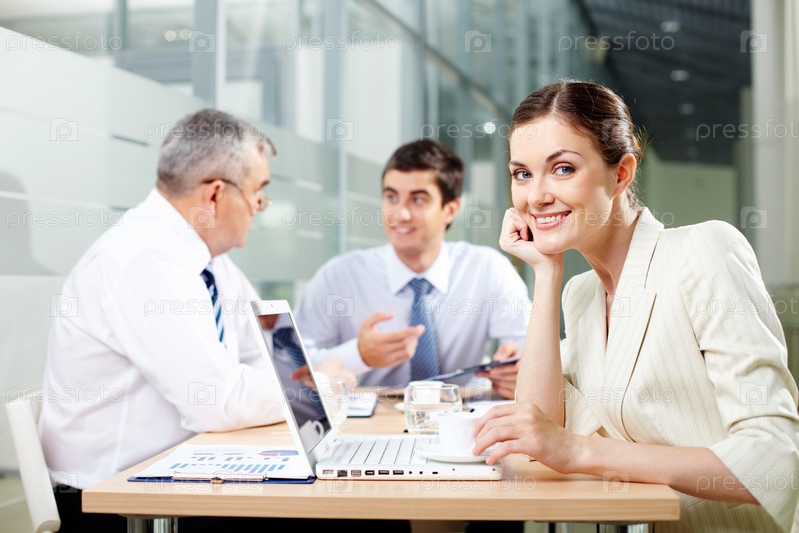 Деловая женщина и ее партнеры в офисе